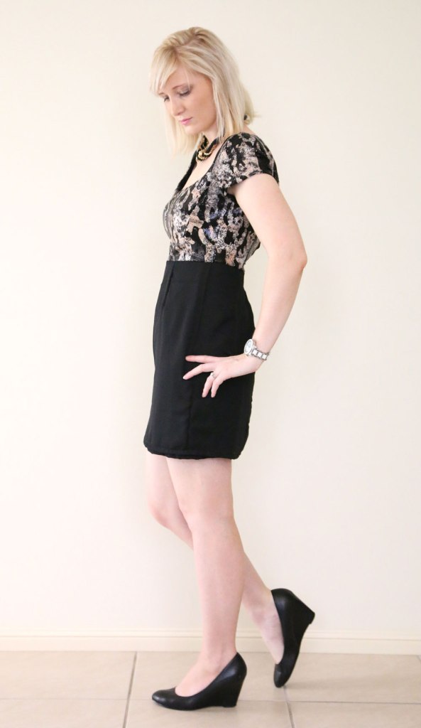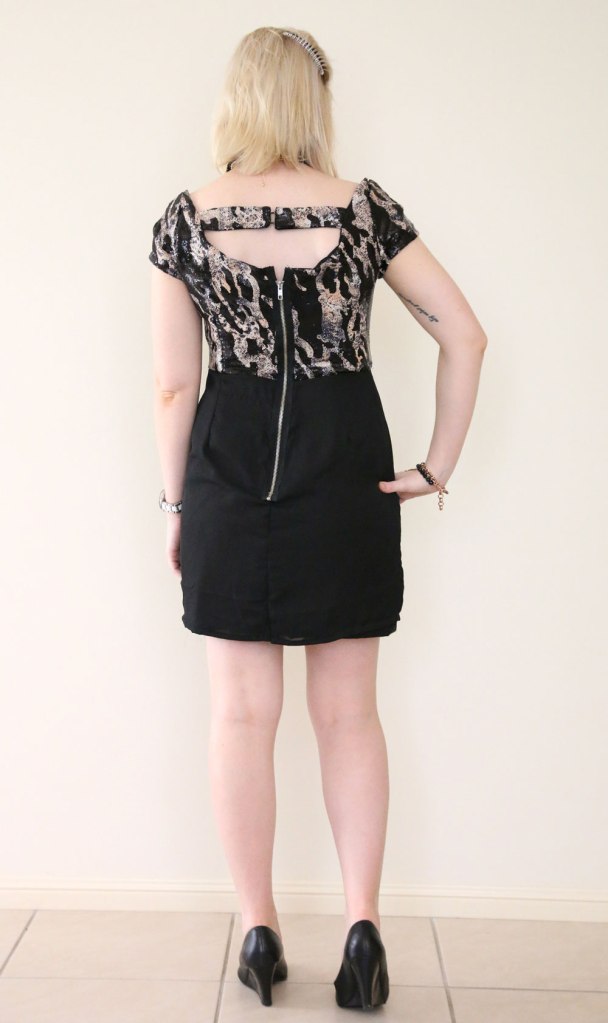 I made the skirt and front lining with rayon fabric which stopped it from being itchy from the sequins. The top part of this dress is the BurdaStyle Tulip pattern and as you can see the back didn’t quite fit me well enough. It was also a little hard to get it to sit nicely with the sequin fabric type. This was also the first time I’ve ever sewn with sequins so you can see it’s not all that wonderful.