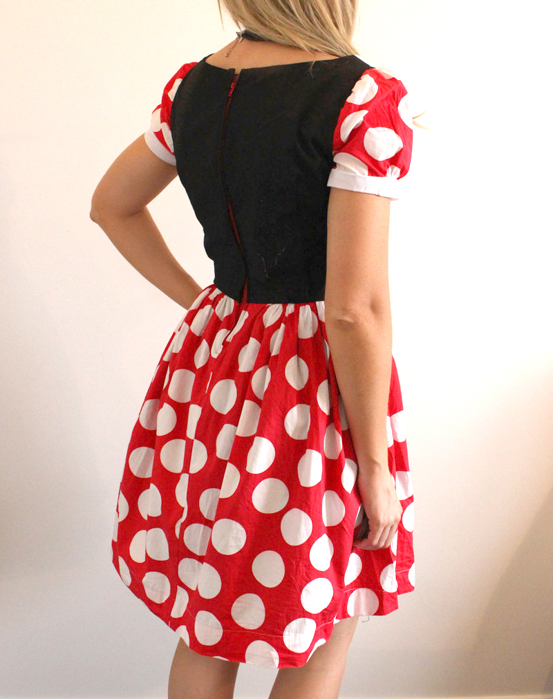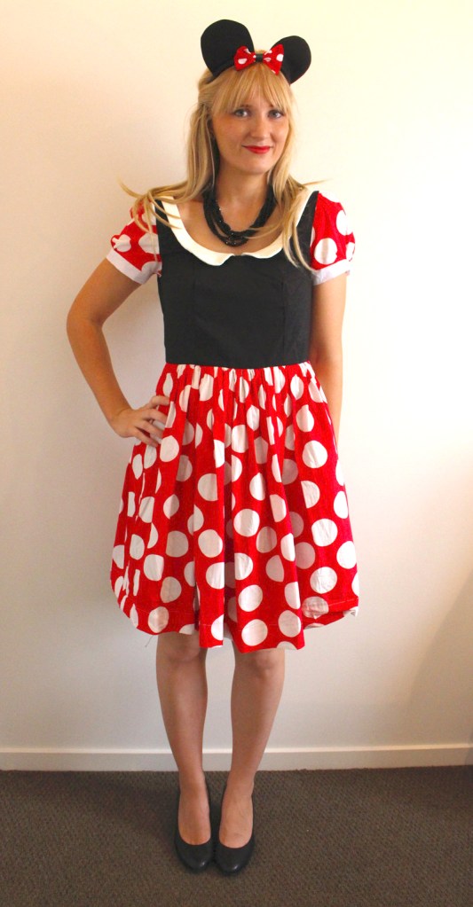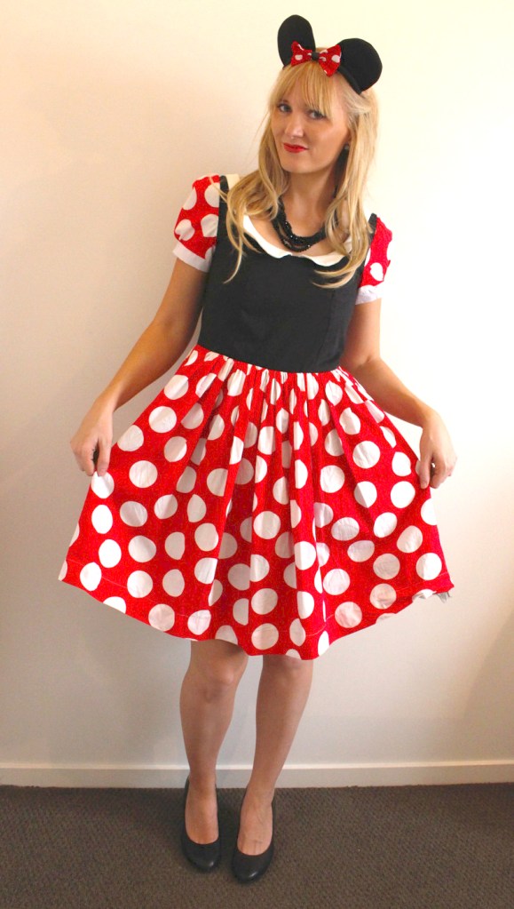 As another dress up party invite pops in the mail I thought what a great opportunity to make my own outfit! This dress was for a friends 30th Disney dress up party and I decided to go as Minnie Mouse. I started with the “Dress with gathered rectangle skirt” by BurdaStyle and just ordered the ears off eBay.