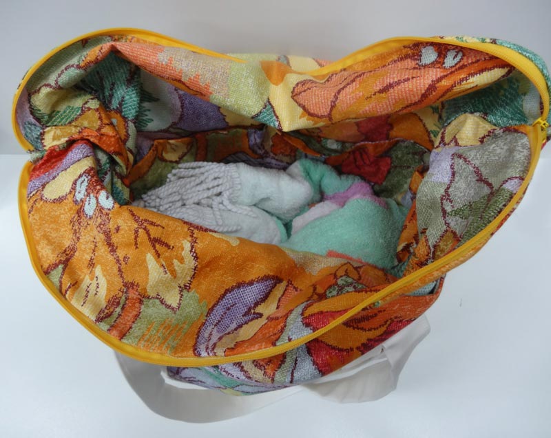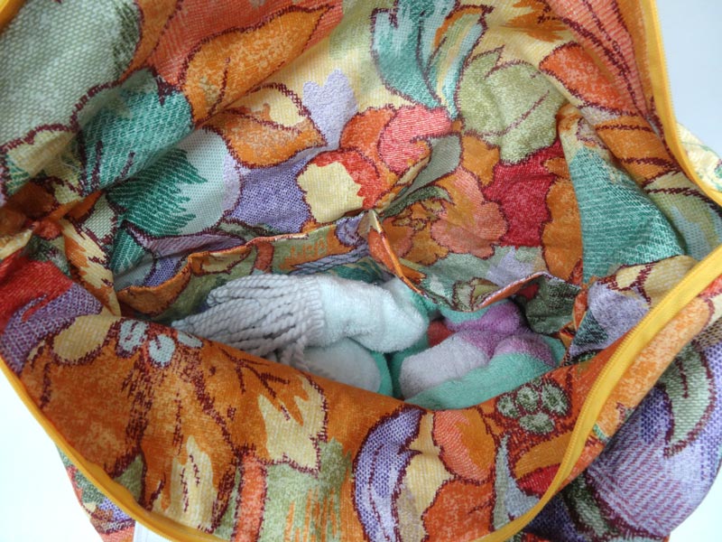 I lined the base with some quilt wadding so that it sits up nicely and the rest was lined with a really lightweight interfacing which kept it light and floppy. I think the colour blocking of fabrics worked really well too. It’s super bright and perfect for the beach!
