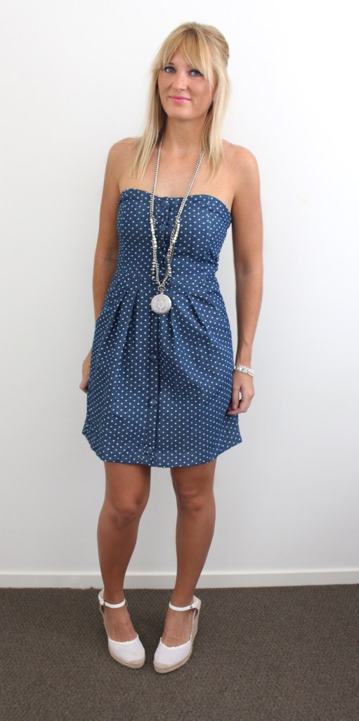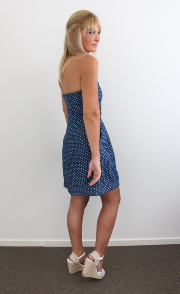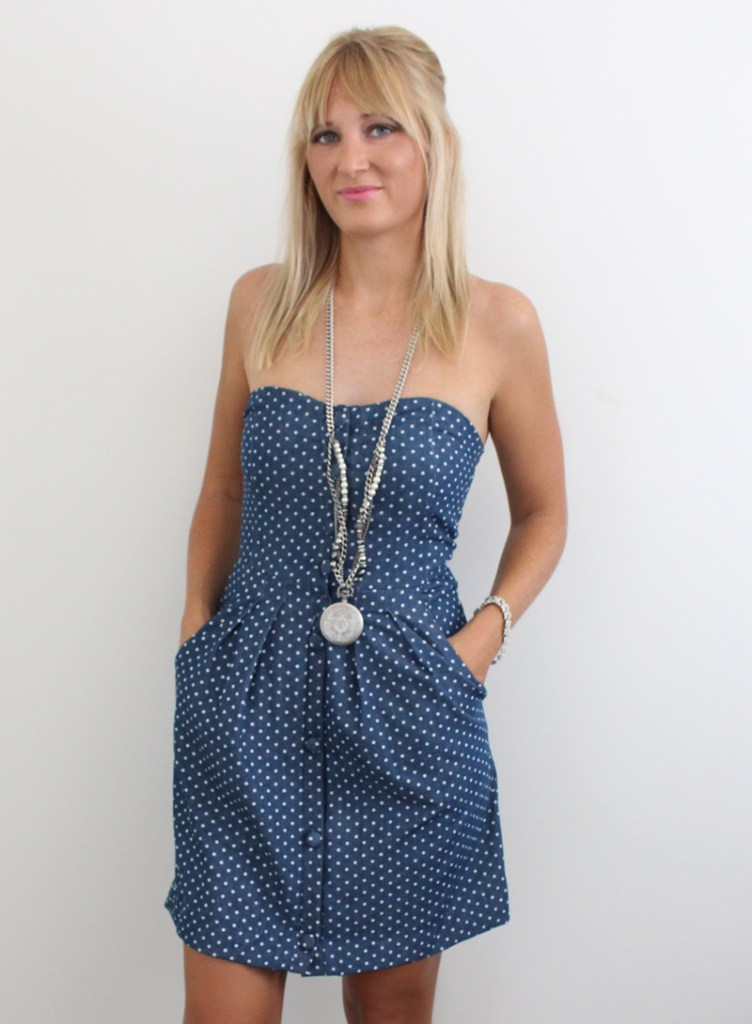 I made this dress in a lightweight polka dot denim and I really didn’t think coloured buttons would work so I created my own fabric covered buttons to match. I was so excited and happy with the result and it was ready to wear the very next day.