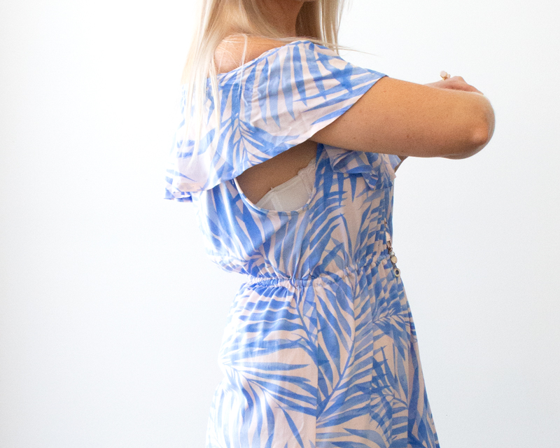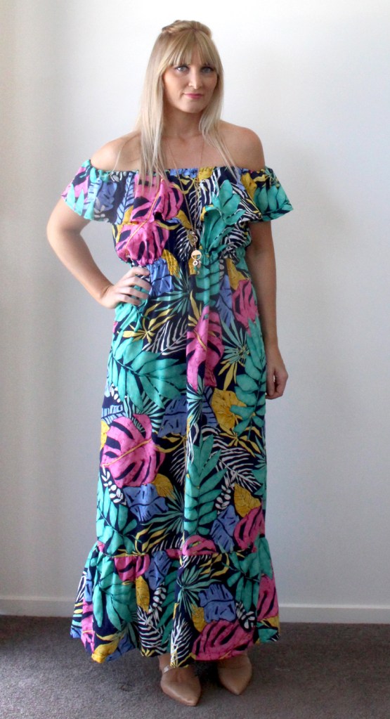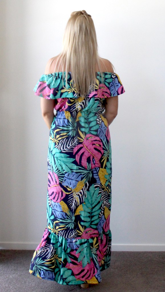 This is the second version of this dress and thankfully you can’t see my bra on any angle, even if I lift my arms. I absolutely love the dress style and the extra gathered panel at the bottom. It’s perfect for summer and being lightweight rayon material means I can wear this in the humid Brisbane heat.