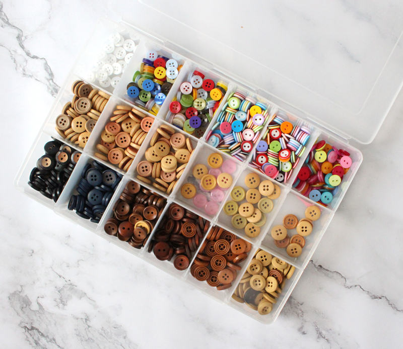 I’ve used this button box for a number of projects, which is perfect for work shirts, skirts and many more. If you’re like me and trying to save money with your home projects I would highly recommend finding some cute bulk buttons online!