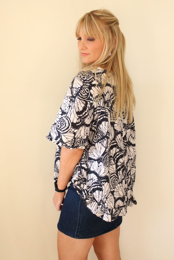 This was the first version (below) and the neckline was true to the Tilly and the Buttons blouse, which is more of a boat neck style. So with the other versions I’ve rounded the neck line and made it sit higher on the shoulders.