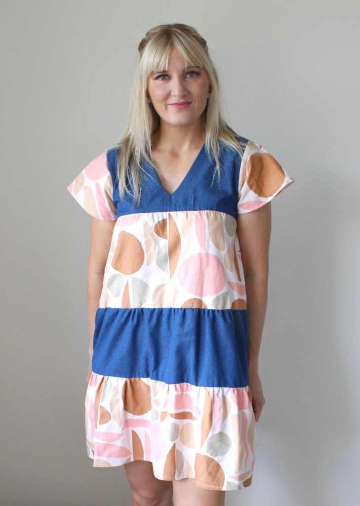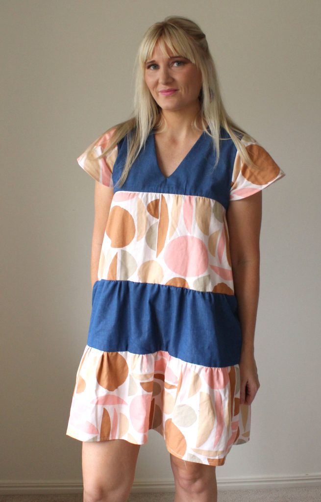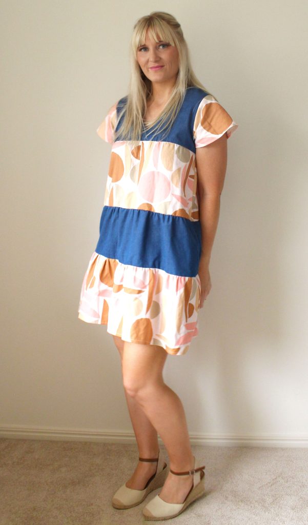 As soon as I finished my first Leila dress by Marsha Style patterns I knew I needed another one! I decided to colour contrast it with this abstract Duck Cloth cotton from Spotlight. This dress is so cute and comfortable to wear on the weekends and also really easy to make up!