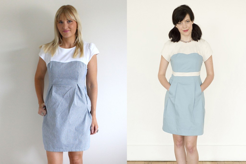 Description: This is a beautiful two-toned dress including front pockets a pleated skirt and small capped sleeves. Perfect for beginner sewers as Colette includes easy-to-follow instructions.