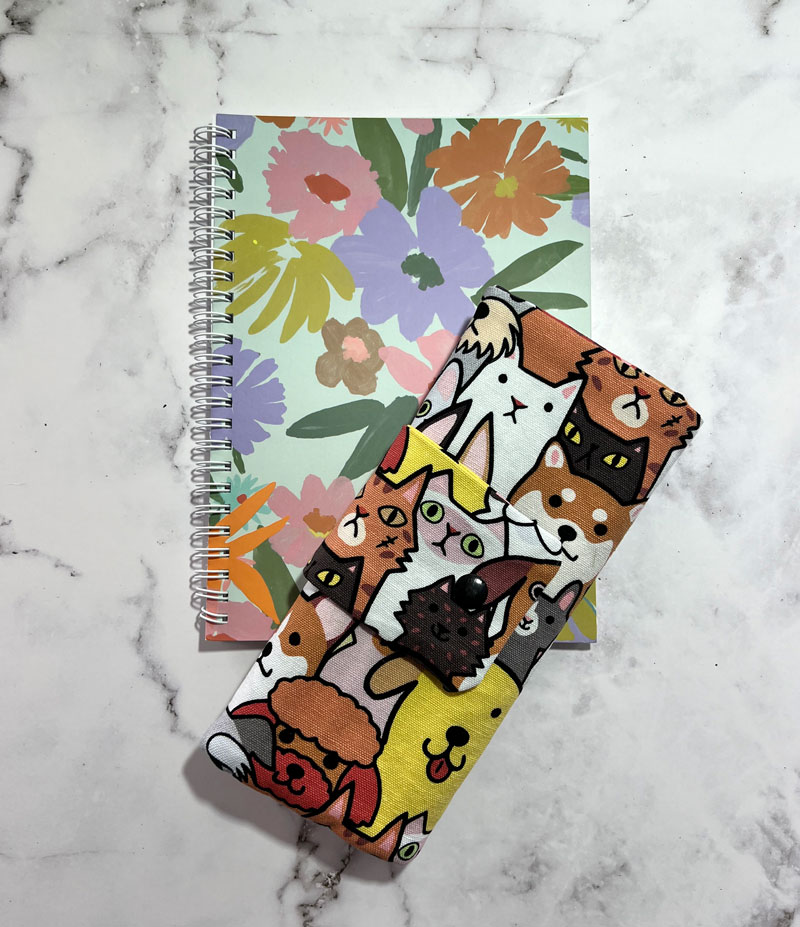 I have created a free downloadable sewing pattern to complete this project. Supplies include approximately 0.25 meter of fabric, firm interfacing lining (sew on) and snap closures.