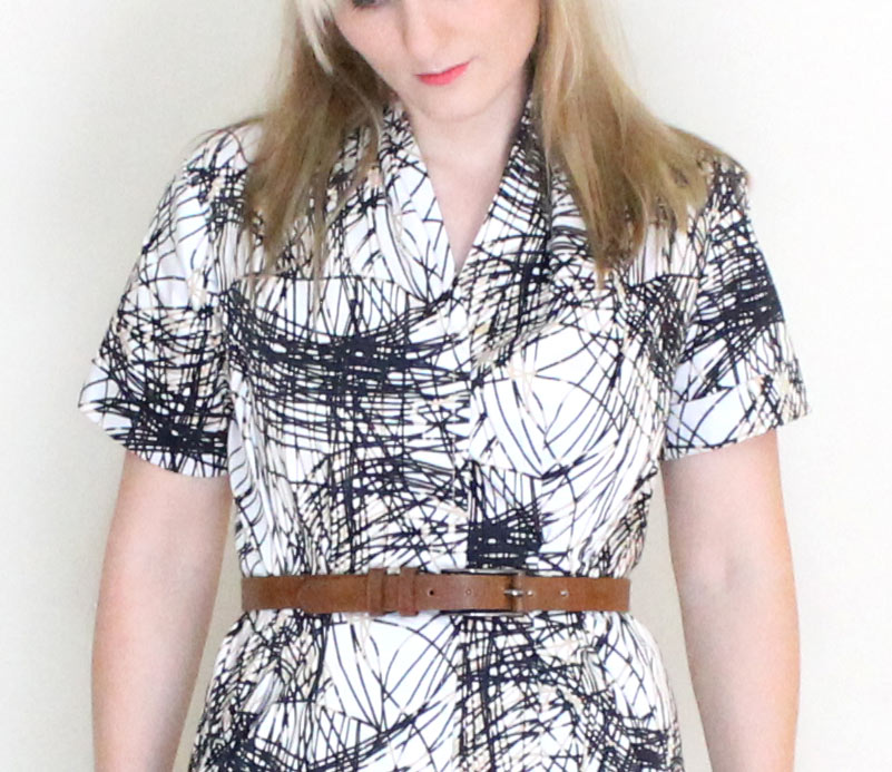 I had to find some pictures from my archives (2013) to showcase this dress when I first made it. The white and black scratchy style print dress was created from the original pattern. As you can see it’s quite short! So all future versions I made for this dress I actually extended the skirt so it was longer and more wearable for work.