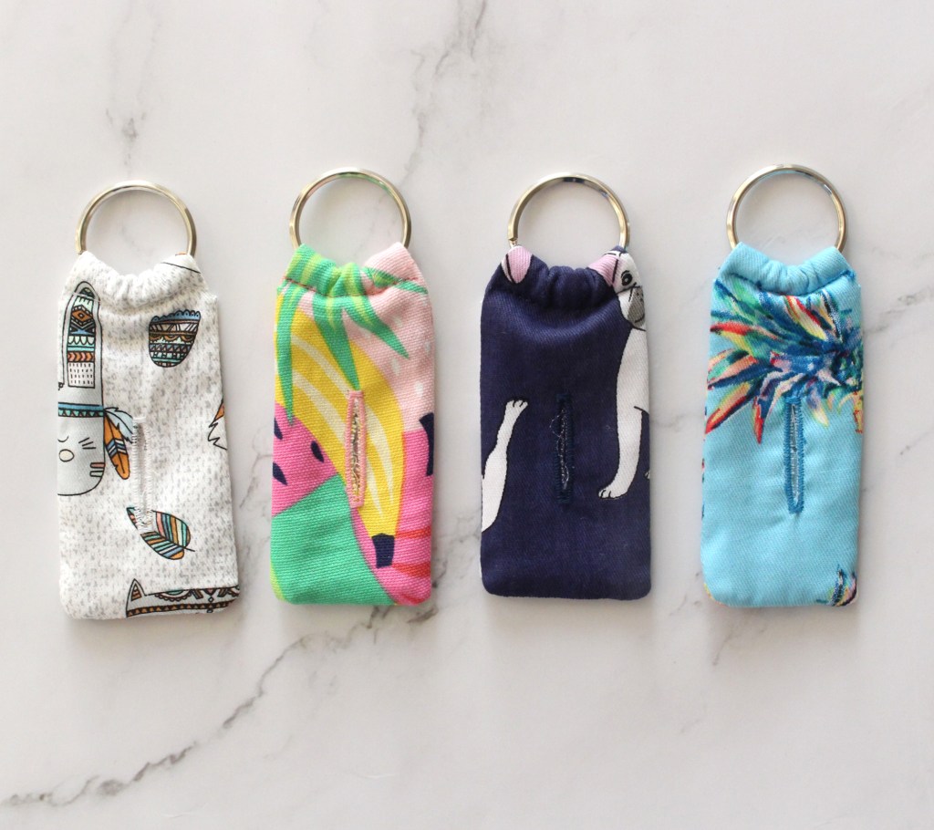 You can download the free Lipstick or Doggy Bag holder sewing pattern to complete this project. You will need very minimal fabric for this project so you could even use some leftover material. You will also need a pack of keyring holders from the craft supply shop, such as Spotlight or Kmart.